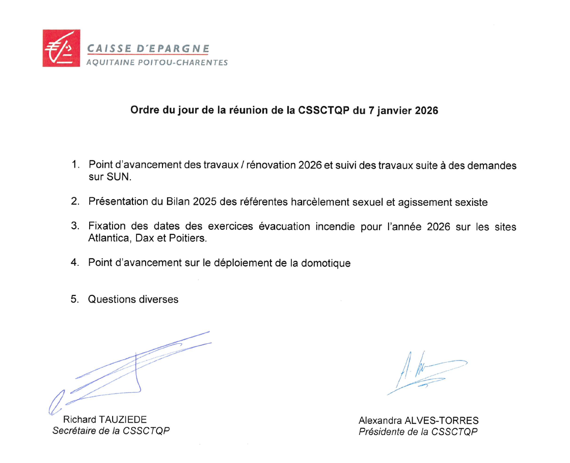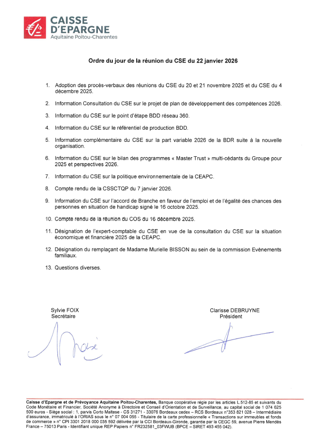 Ordre du jour du CSE du 22/01/2026