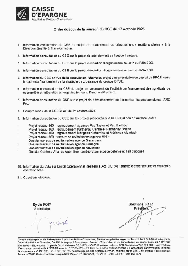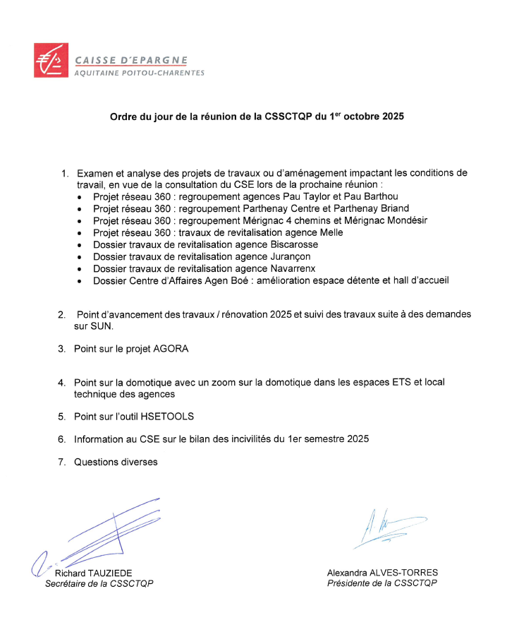 Ordre du jour du CSE du 17/10/2025